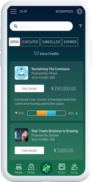 The Co-op is where you’re compensated for participating in decentralised governance. This is where you can ask for interest-free loans, funding for your idea, or money to regenerate our planet.