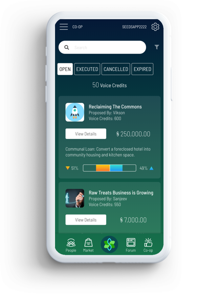 Third, you get a direct voice. Your local physical community gets money to spend however you and your community decides. Proposals can range from interest free loans to buy your tiny-house, co-owning a commercial kitchen, or receiving grants to regenerate native ecosystems.